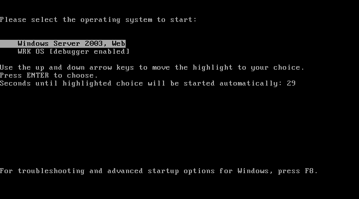 multi(0)disk(0)rdisk(0)partition(1)\WINDOWS="WRK OS" /kernel=wrkx86.exe /hal=halacpim.dll /debug /debugport=com1