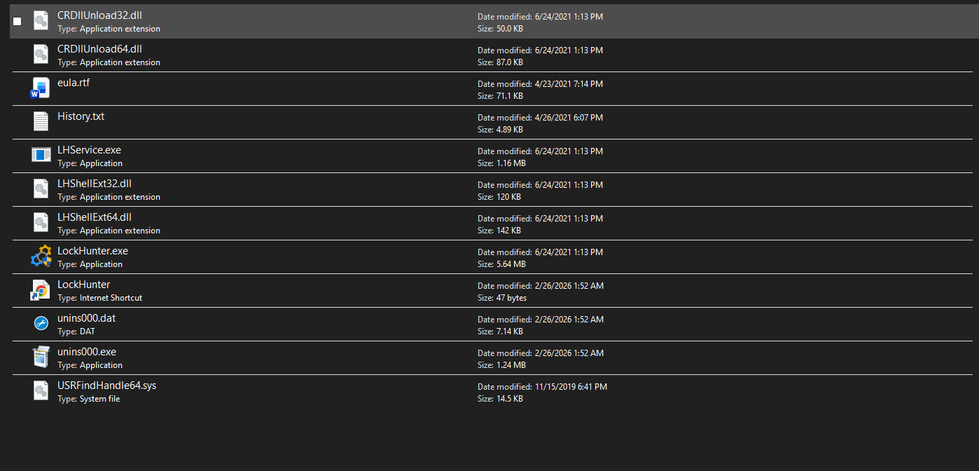 I also think that looking at LockHunter’s folder is a good place to start, since we can start identifying the files it uses.